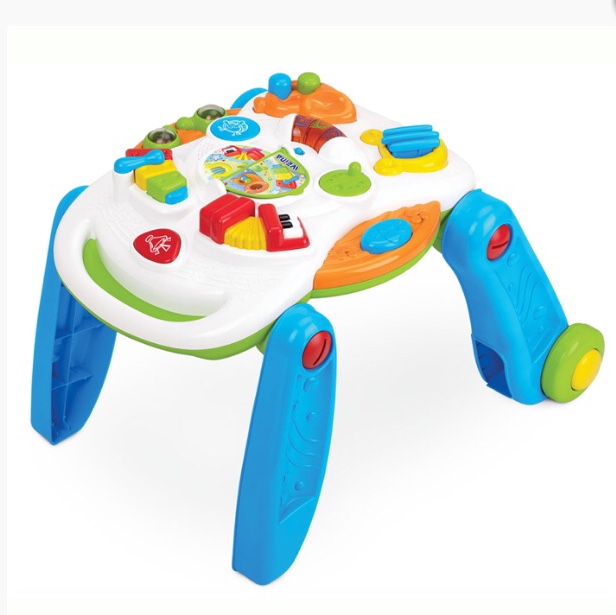 Производители игрушек стараются запихнуть в такие столики побольше функций для привлечения внимания и увеличения цены. По сути это набор разных крутилок и кнопок, при нажатии на которые воспроизводится звук или мелодия. Если ребенок научится нажимать кнопки на таком столике – это плюс один навык – умение нажимать кнопки, больше никакой пользы это не несет, и развития особенно. Но, опять же, как инструмент для отдыха маме – да. Тем не менее, развивающими такие игрушки назвать нельзя, а стоимость их достаточно высокая.